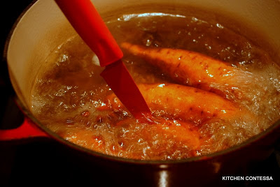 In the mean time get your sweet potatoes boiling…you want to boil until a knife can pierce without tension, be careful because you do not want them to be too mushy