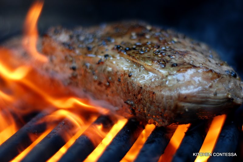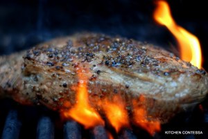 The next step…I rinsed it well under cold water, patted it dry and covered it in crushed mixed peppercorns and whole coriander. Then I went out and started up the grill. I do not have a smoker and pastrami has a slightly smoking flavor. I knew I had to get the smoke in there somehow, so I figured a few minutes on the grill would be all it needed. I was a little worried about the leanness of the meat again. The flames were not shooting up at first, but then it happened, and again I was in heaven.