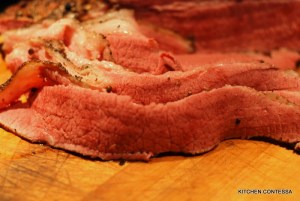 The time had come and the pastrami was ready to come out of the oven. The smell inside the house was amazing. I sliced it as thinly as I could. It was like “butta”. I drove a few pieces over to my parents. My pastrami finally got their attention! Of course, they weren’t even going to be around to have a Reuben. They had been invited over to friends to enjoy BLT sandwiches with fresh out of the garden tomatoes. Mmmmm that sounds good too! Oh well their loss!