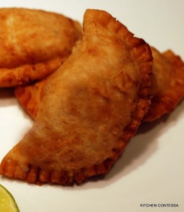 Let’s start with the dough. I have to admit I am a purest. I don’t like using shortening (with the exception of our family nut roll recipe) After experimenting ad nauseam with different empanada recipes I think the perfect dough is a mix of butter and shortening! It is light. It is flaky. It holds together perfectly while shaping the empanadas. It is perfect!