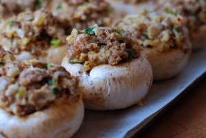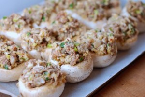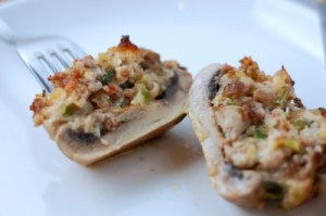 The mixture will look a little oily from the sausage fat but don’t worry. You will need the moisture when baking the mushrooms.