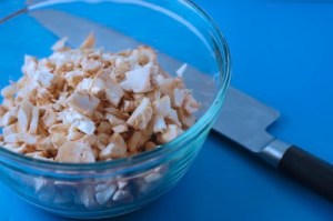 Chopped the stems and pour the Marsala and 2 tablespoons of olive oil over and stir lightly to coat. Set aside.