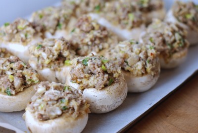 The mixture will look a little oily from the sausage fat but don’t worry. You will need the moisture when baking the mushrooms.