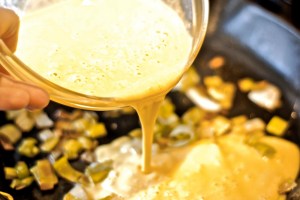 4. Add eggs and cream lower heat