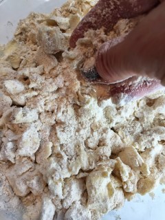 2. Using finger tips or pastry cutter, cut cold butter into flour mixture. Do not over blend! You want