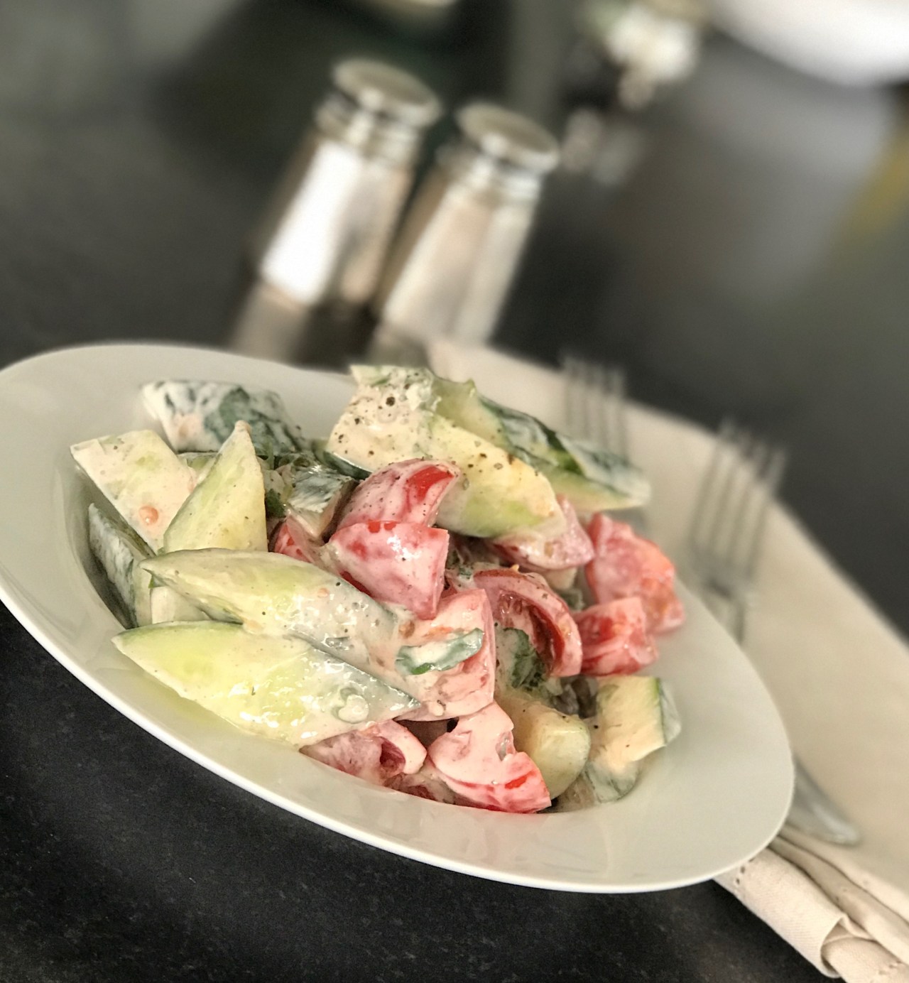 In summer, I want quick, easy, light salads that go with everything I take off my grill. This salad fits the bill! The recipe makes enough dressing to store in the refrigerator for impromptu get togethers or suppers with just the fam throughout the week (or longer)!